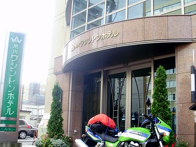 ホテルに到着。旭川市内で少し寄り道したが(距離を調整したわけではない),札幌から三国峠経由でジャスト400km! 写真をクリック |